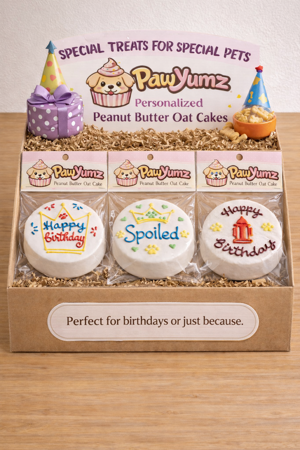 Our product Packaging not only keeps our yummy treats fresh but also allows for versatile merchandising. After pulling off the hang tab the bag has a zipper seal to allow for continued enjoyment of the treats or for you as a retailer to open the product for your display case and re-utlize the zipper bag for the customer to take home. OR just simply Merchandise them inline with other treats or on a high revenue end cap! Easy and Delicious!